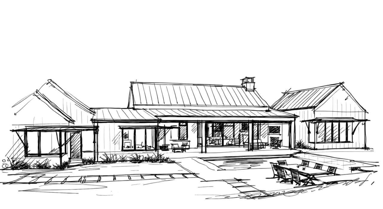 Modern interpretations of the Texas farmhouse build on the practicality of the original form while refining it for contemporary living. Simple gabled roofs, expansive porches, and vernacular materials remain central, but are expressed with cleaner lines, larger openings, modern windows, and more intentional massing. Traditional forms are layered and extended to create stronger indoor–outdoor relationships with a strong connection to the landscape. The result is architecture that feels rooted in tradition using modern materials and massing but restraint on ornamentation to create comfortable living spaces.